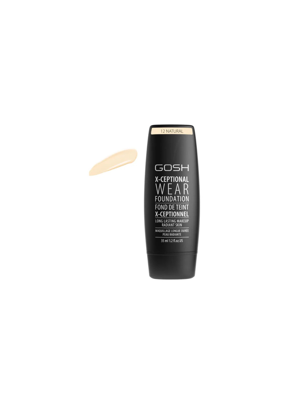Le Gosh X-Ceptional Wear Foundation en teinte 12 Natural est un fond de teint haute performance à la teinte naturelle universelle.