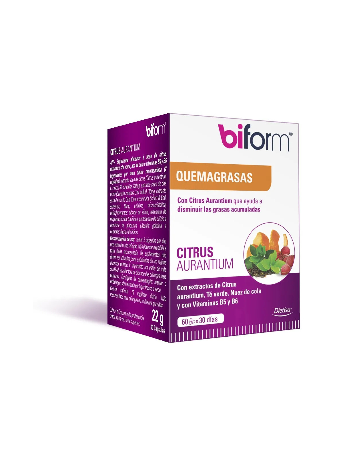 Biform Citrus Aurantium est un complément alimentaire minceur à base d'extrait d'orange amère (Citrus aurantium). Ce fruit est reconnu pour sa richesse en synéphrine, un actif naturel qui stimule le métabolisme des graisses.