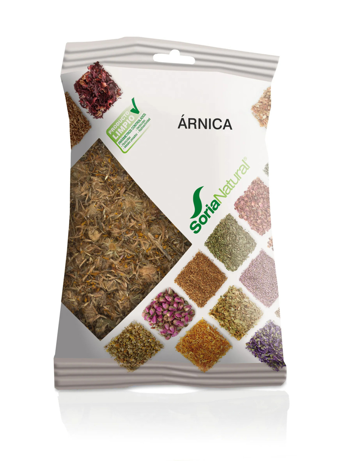 L'Arnica (Arnica montana) de Soria Natural est proposé sous forme de fleurs séchées dans un sachet de 30 grammes. Cette plante de montagne est mondialement reconnue pour ses propriétés anti-inflammatoires et antalgiques en usage externe.