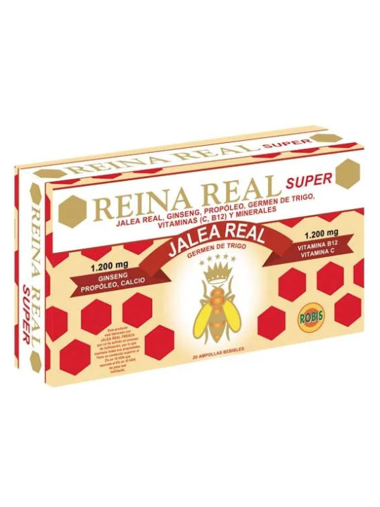 Reina Real Super de ROBIS est une formule premium de gelée royale enrichie pour une action revitalisante maximale. Ce complément en ampoules buvables offre un concentré d'énergie aux personnes ayant des besoins accrus en vitalité.