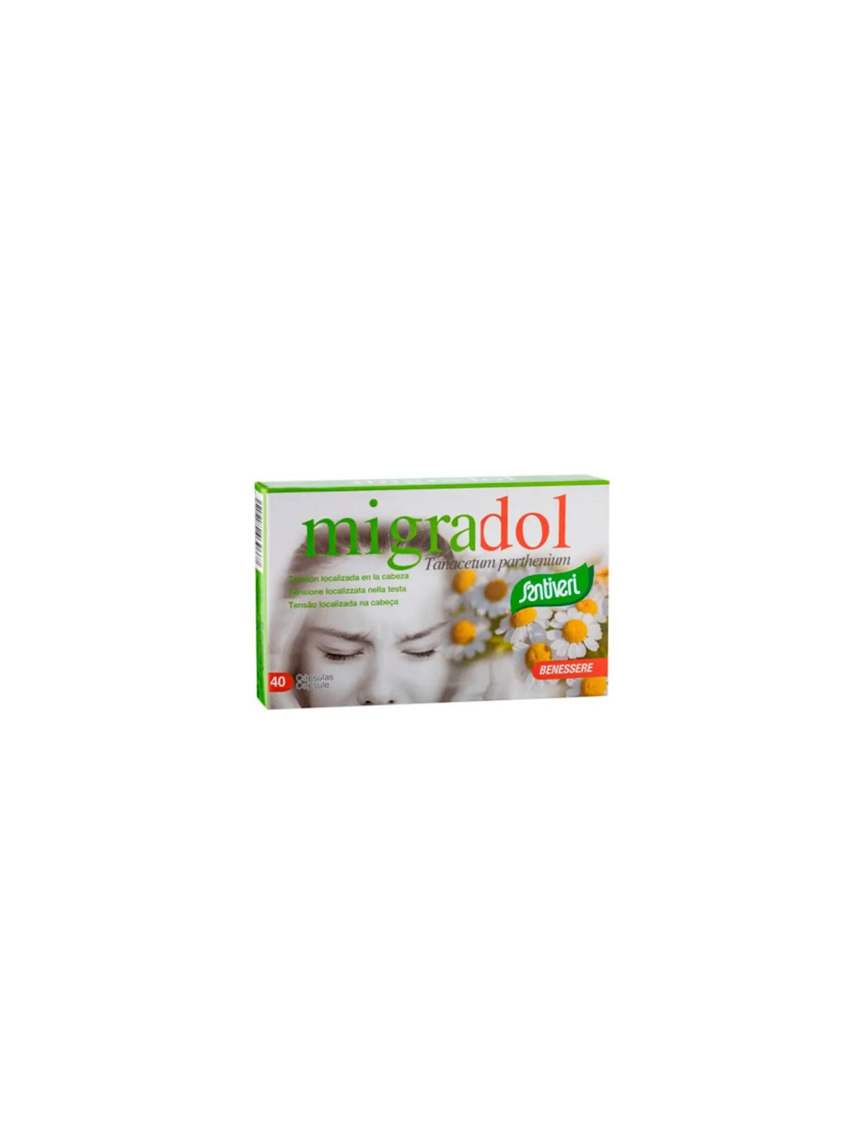 Migradol Tanacetum de Santiveri est un complément alimentaire à base de grande camomille (Tanacetum parthenium), plante traditionnellement utilisée pour son action sur les maux de tête. Santiveri propose cette solution naturelle pour améliorer le confort au quotidien.