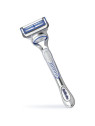 Le système à deux lames espacées offre un rasage de près tout en réduisant la pression sur la peau. La tête du rasoir pivote pour suivre les contours du visage, tandis que la bande lubrifiante apporte confort et glisse. Le manche ergonomique assure une prise en main optimale.