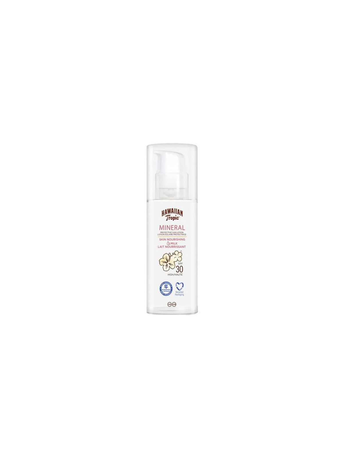 Le lait corporel Mineral Skin SPF 30 de Hawaiian Tropic est une protection solaire formulée avec des filtres 100% minéraux. Cette marque iconique, synonyme de soleil et de tropiques, propose ici une alternative plus naturelle et respectueuse de l'environnement marin.