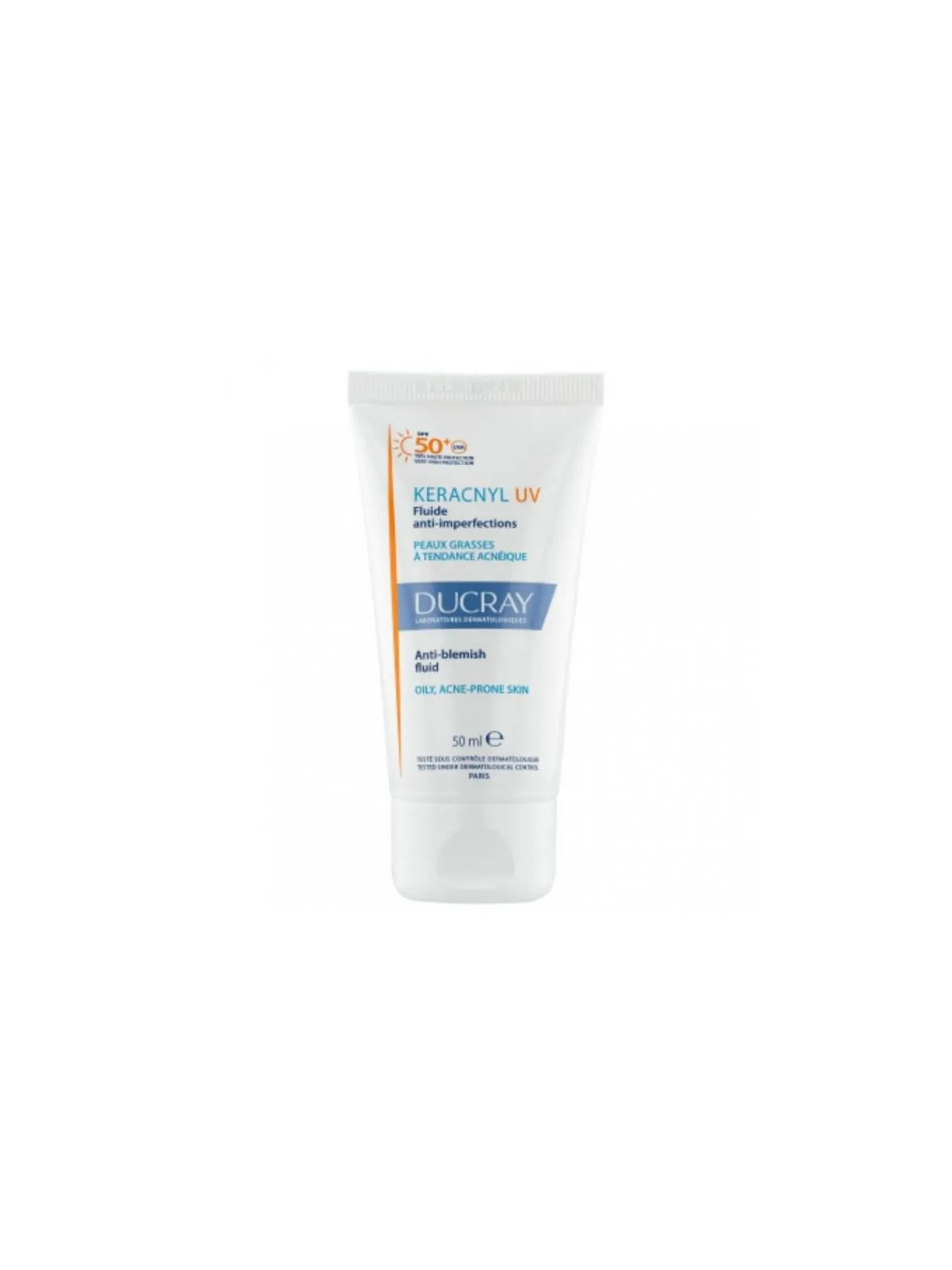 La crème Ducray Keracnyl UV SPF50+ est un soin solaire spécialement conçu pour les peaux à tendance acnéique. Développée par les Laboratoires Ducray, cette crème offre une très haute protection solaire tout en prenant soin des peaux grasses à imperfections.