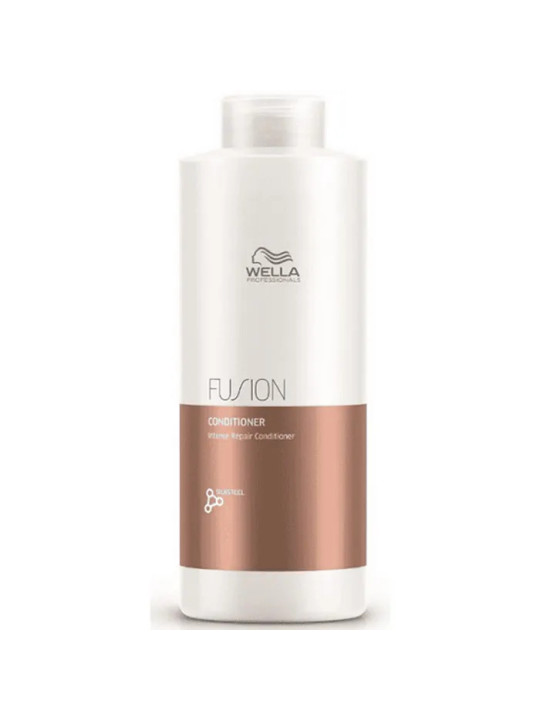 Wella Professionals présente l'après-shampooing Fusion en format professionnel 1000ml, un soin intensif pour les cheveux très abîmés. Cette formule répare et renforce la fibre capillaire fragilisée.