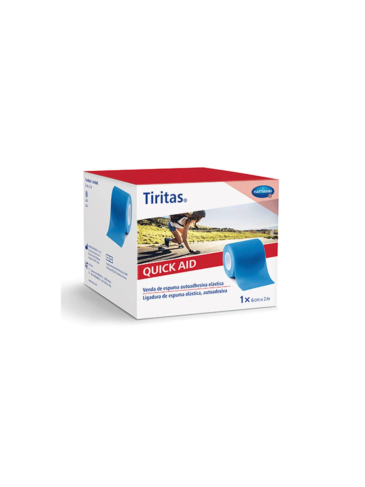 Les Pansements Quick Aid de Hartmann sont présentés sous forme de bande de 6 cm de large sur 2 mètres de long, en coloris bleu. Ce format permet de découper des pansements sur mesure adaptés à chaque blessure.