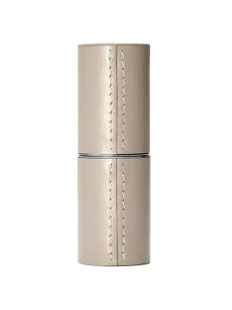 La Bouche Rouge propose son étui à rouge à lèvres en cuir beige, un accessoire de luxe conçu pour accueillir les recharges de la marque.